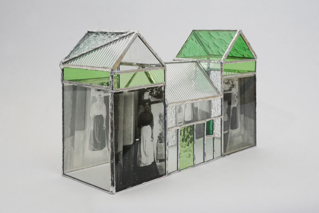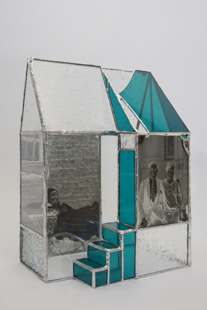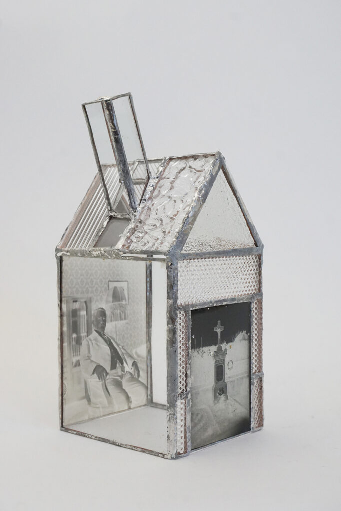 Ces objets photographiques tridimensionnels sont créées sous forme de « maisons de verre » en utilisant la technique du vitrail Tiffany. Ils évoquent la mémoire, l’intimité, les tensions psychologiques liées à la maison, conçue ici non seulement comme un refuge, mais plus largement comme un lieu de complexité et parfois de douleurs.