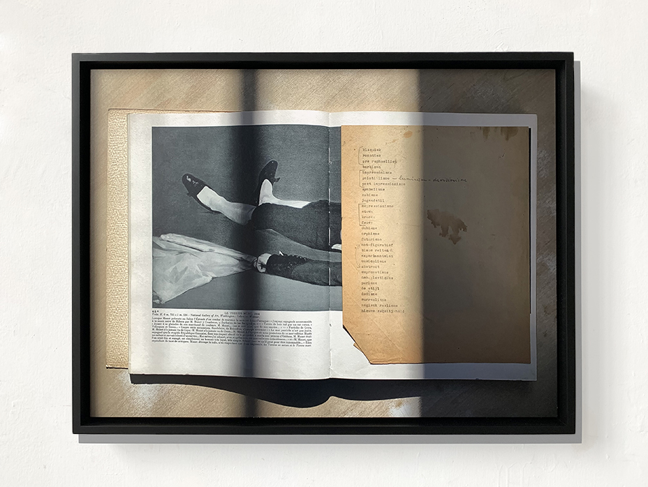 Dans l’immeuble où se trouve l’atelier de Laurence Aëgerter, un artiste voisin, qui occupait l’étage en dessous, est malheureusement décédé. Il était peintre et donnait régulièrement des cours à des étudiants, vieillissant avec eux. En vidant son atelier, sa femme a gentiment empilé des piles de livres d’art pour les autres artistes de l’immeuble, afin qu’ils puissent choisir ceux qui les intéressaient.