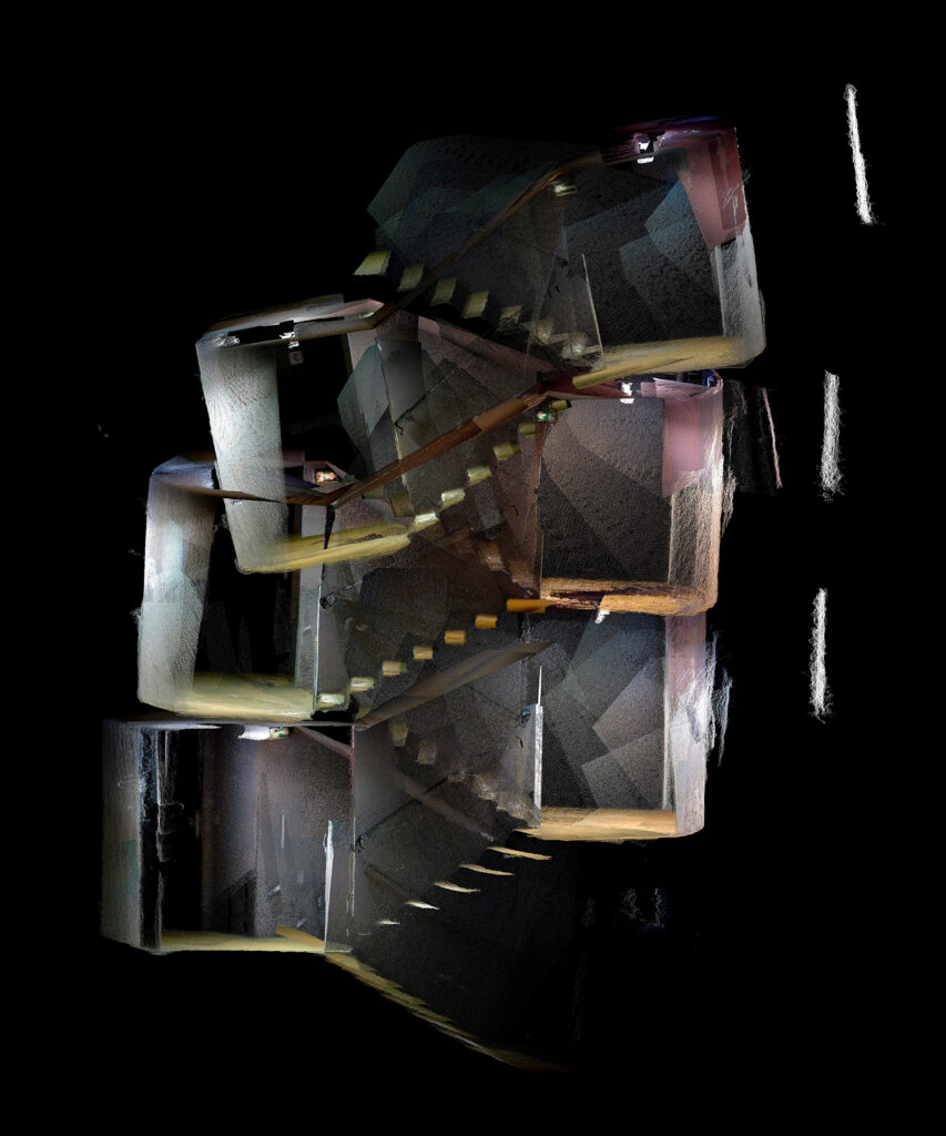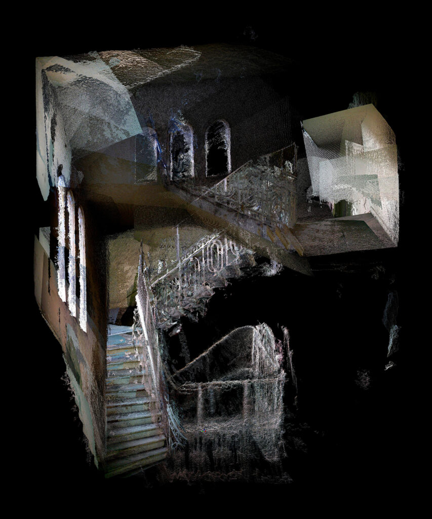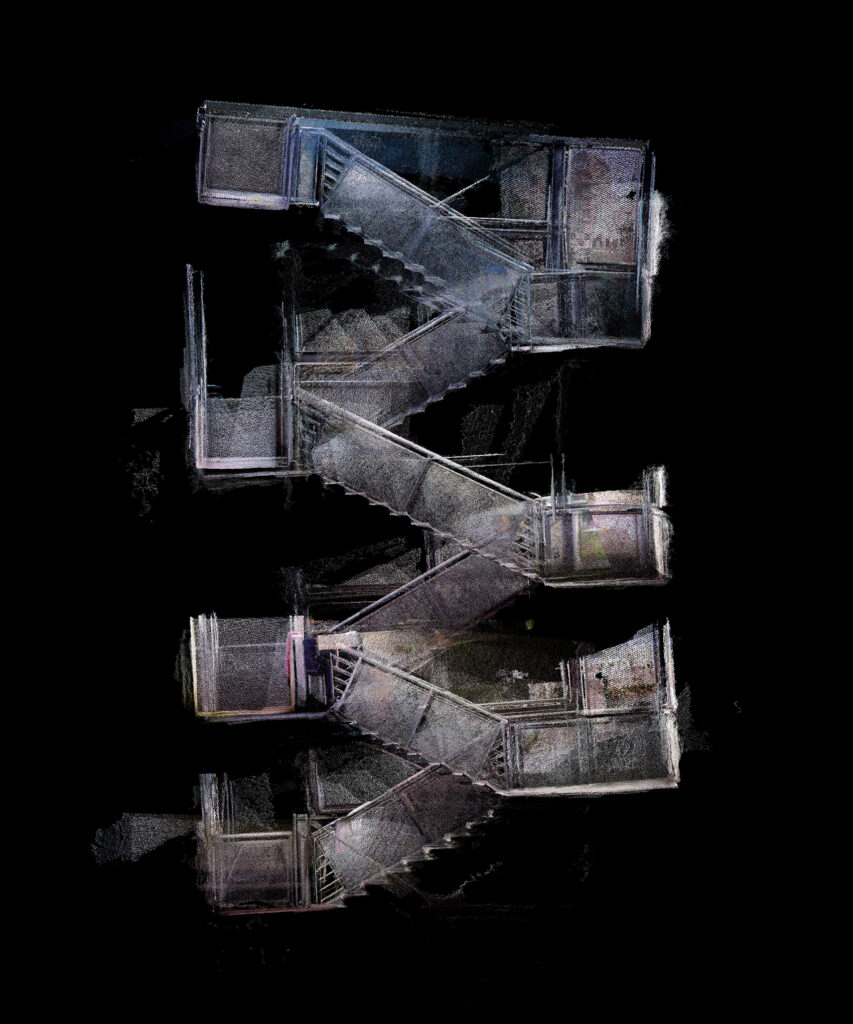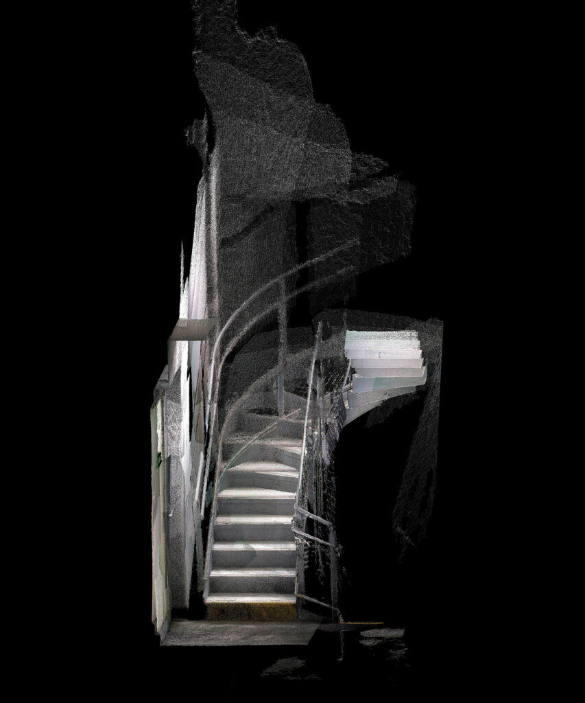 L’artiste les ancre dans un espace et un temps spécifique en y ajoutant une ombre portée définie d’après le jour et l’heure de leur réalisation. Il recontextualise l’image en la rattachant à l’action de son premier fabricant et s’inscrit dans une chaîne de création collective dont il forme un nouveau relais. Le contexte, c’est l’ombre, la création d’un espace de projection s’évanouissant dans la brume que l’artiste compare à un nuage numérique*, et dont ses bâtiments semblent surgir tels des pop-up.