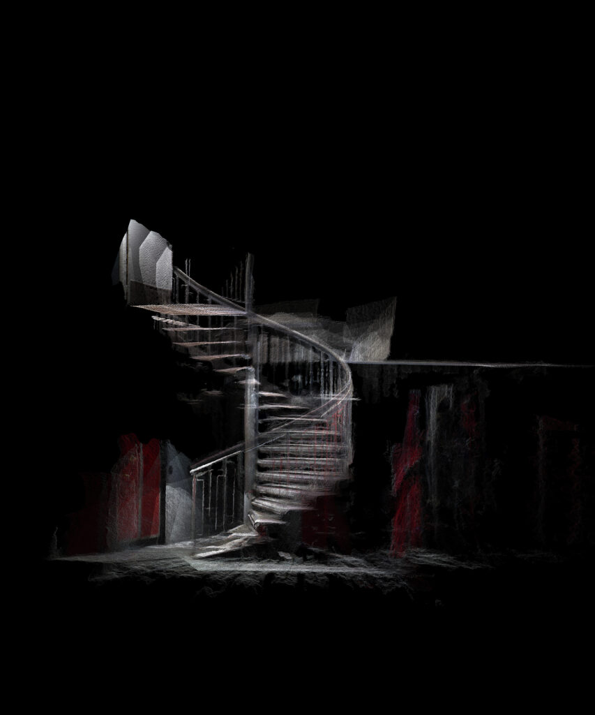 La série Boîte noire est née d’un sentiment étrange, celui d’être voyeur et contempteur d’une excitation menée à l’écart de considérations éthiques au profit d’une esthétique algorithmique. « Les vues réalisées à partir de vidéos YouTube triées afin de ne retenir que celles des organes de presse, traduites en jpeg, puis modélisées en 3D agencent les ruines de guerre d’Alep et de Damas sous la forme d’une membrane quasi organique et close sur elle-même. À mi-chemin entre la restitution muséographique et le jeu vidéo, ces maquettes paraissent tout à la fois déréalisées et paradoxalement recorporalisées. » [extrait] « Input Output », par Marion Zilio, Boîte noire 2019.